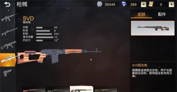 svd狙击枪 是一把连发狙击枪。对比单发狙击枪:伤害低,但能连点,弹匣容量多。对比步枪:伤害高,但稳定性与射速不如步枪。适合单发狙击枪命中率不高的同学们,因为他可以连发,而且连发的威力比步枪高。