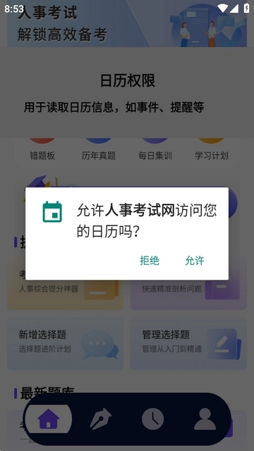 3、选择学习计划需要获取日历权限。