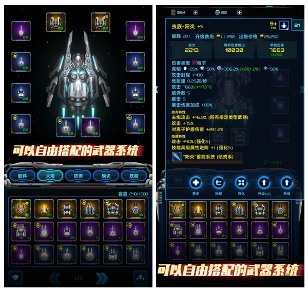 可以自由组合的太空战舰,巨型战舰率领着小型飞船,向着虫族的老巢发起进攻。