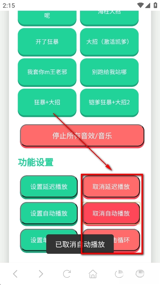 想要停止可以点击【停止所有音效/音乐】去停止