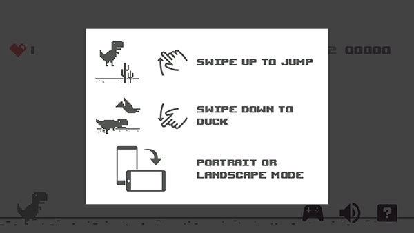 谷歌小恐龙的手机版本是从谷歌浏览器移植过来的,能够在手机端独立运行,并且支持横屏和竖屏的自由切换。在游戏过程里,玩家要操控一只小恐龙持续跑酷,越过前方所有的障碍,要是撞到障碍就会游戏失败,得重新开始。