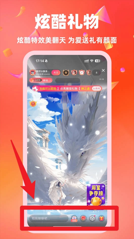 4、你可以在直播间底部的输入框里和主播实时互动聊天,还能通过赠送礼物来提高活跃度。