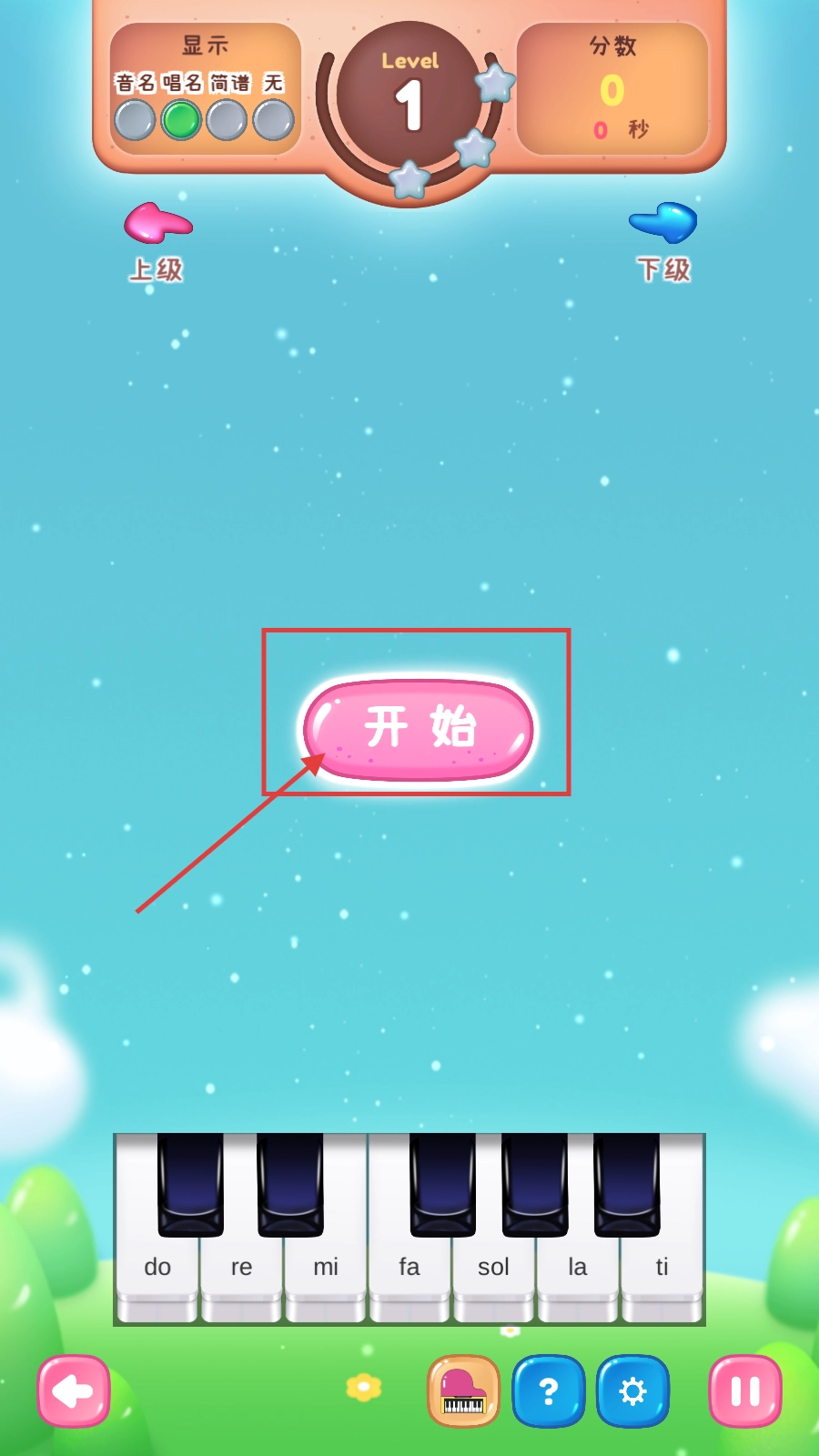 3、练习时,按照弹出的音符,点击do键这类对应的钢琴键来弹奏,以此完成单音的识别和弹奏练习。