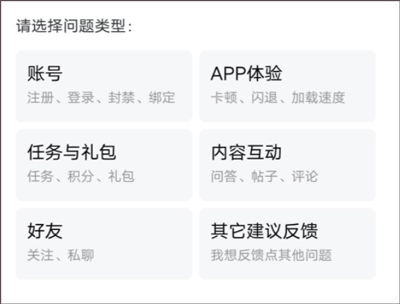 步骤2:进入“我要反馈”页面后,你就能依据具体的问题类型向闪闪提交建议反馈了。