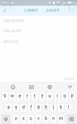 5、点击“新写一本”后,即可看到作品名、章节以及文章正文等内容。