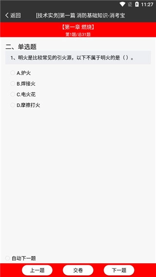 1、打开消考宝App,这里为你准备了一级、二级消防工程师以及初级、中级、高级消防员鉴定考试的练习真题;