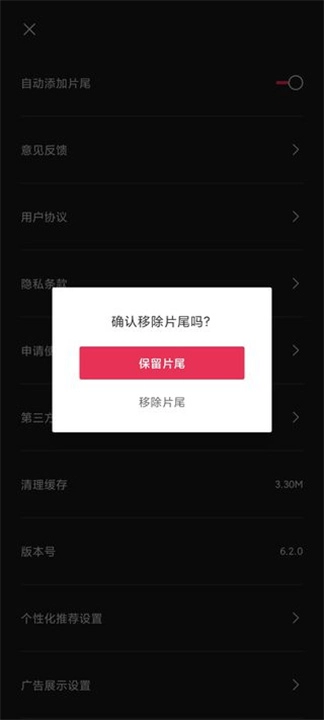 2. 进入设置菜单后,找到“自动添加片尾”这一选项并将其关闭,这样就能防止导出视频时出现默认水印了。