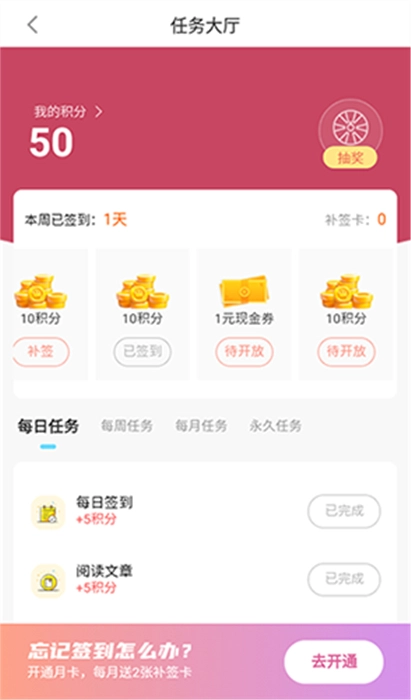 2、在【赚积分】页面的任务大厅里,完成平台指定的任务就能得到对应的积分奖励。