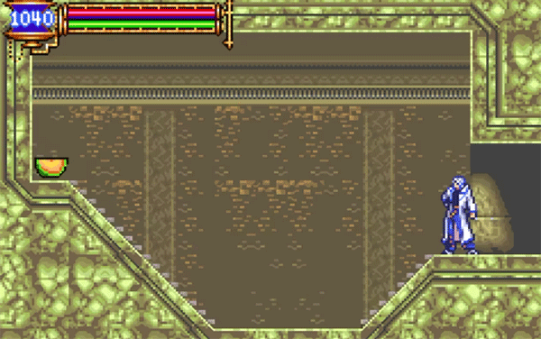 3、③号隐藏房间的位置在恶魔城藏书库存档点的最上方,一直走到最上侧后往左走,会看到一堵墙。