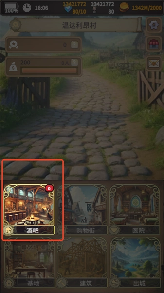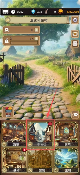 8、看完之后我们就离开酒馆,然后给冒险者买一些装备,点击【购物街】,这里可以购买装备