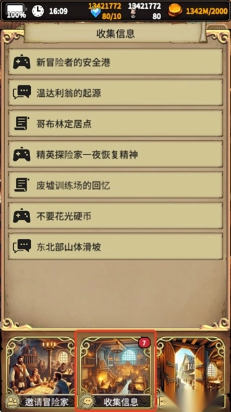 7、如果想知道一些新手冒险者该知道的事情或者附近树林和洞穴的小道消息,我们可以点击【收集信息】来查看