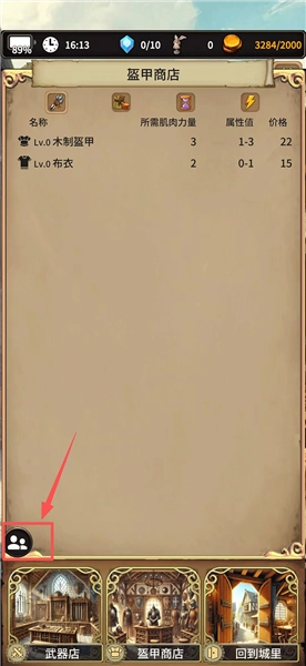 4、购买到的装备可穿戴到冒险家身上,点击左下角人物图标