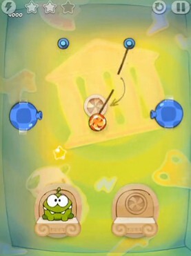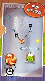 牛仔糖果:点击其中任一个糖果,屏幕上的两颗糖果就会被绳子相连,绳子长度取决于两颗糖果间的距离,此操作可无限次使用。一旦其中一颗糖果被吃掉,该道具即失效(仅在狂野西部场景出现),这一西部主题道具为游戏增添了不少趣味。 扇子:点击可旋转扇子角度,它能遮挡除糖果之外的所有事物(包括OmNom),扇子下方的东西对糖果不起作用,玩家需巧妙灵活运用这个具有东方风格的道具。 磁化装置:按下磁化装置,两颗糖果会相互吸引,这一物理机关让解谜过程变得更加丰富多彩。 遥控糖果&飞行平台:机器OmNom会站在飞行平台上,遥控糖果如同普通糖果般能自由移动,而飞行平台会跟随遥控糖果飞行(类似飞行糖果)。当遥控糖果被吃掉,飞行平台便会停止移动(仅在未来场景出现),这个未来科技道具为游戏带来了全新的玩法与体验。