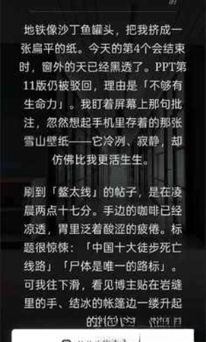1.没有背景音乐烘托情绪,只有冷静克制的文字叙述,却能让人始终维持着紧张感。