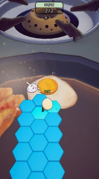2、对局过程中会随机出现各类动态机关:高速旋转的危险铲子、湿滑难行的黄油滑道、突然翘起的煎锅边缘,这些元素既是需要躲避的致命威胁,也是可以利用的翻盘利器。