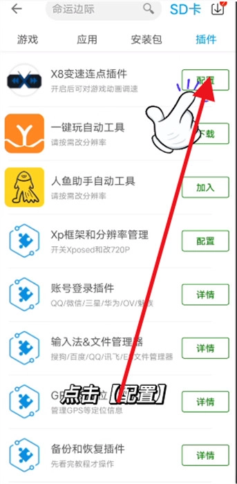 2、这里可以看到不少现成的插件,能依据游戏的状态进行配置,直接点击右侧的【配置】按钮即可。
