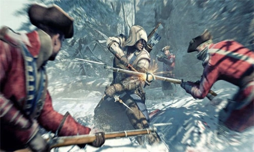 康纳一行人在驶向雷达显示的绿色区域时,遭遇了英军主力舰。他们果断实施强行登舰行动,在激烈的混战中接连完成五次反击刺杀。最终成功击杀船长后,康纳引爆了舰上的火药桶,随即撤离了这艘主力舰。