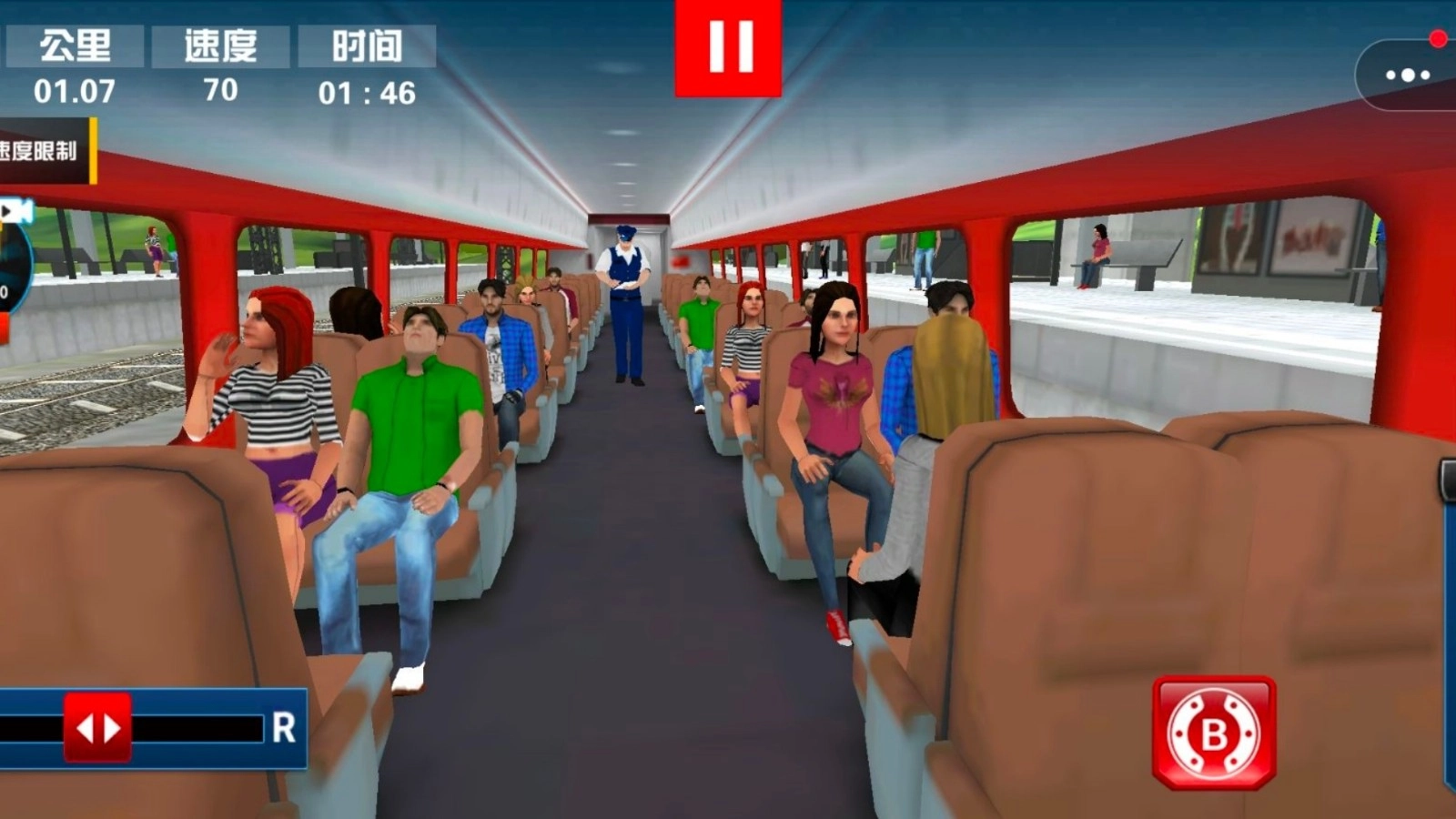 3、通过操作左右两侧的按钮来控制列车的启动、停止、变轨以及行驶方向,确保乘客能够安全且准时地抵达目的地,从而完成基础的运输任务。