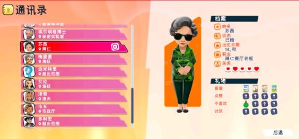2、这是完成所有好感人物后的梅姨,她偏爱甜食,泡泡糖和棉花糖都可以买给她,而她最喜欢的是健康药水——毕竟她的愿望是变年轻,只是健康药水价格不菲,性价比不算太高。