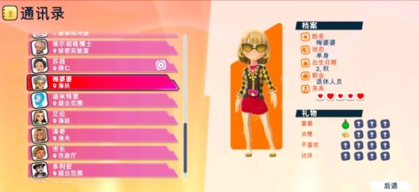 6、当赠送任意角色钥匙(前提是与该角色达到较高友情度)后,对方会成为你的室友,此时身边会新增一个房间。不过室友通常回来得很晚,回来后也只是坐在椅子上,没有太多互动选项。若想与对方结婚,可赠送戒指,戒指可在住宅区的高档服装店购买。
