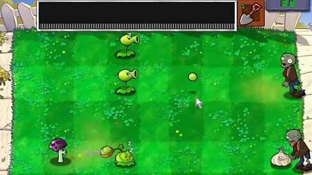 1. 无论前方是否有僵尸,胆小的蘑菇始终在不停地射击。
