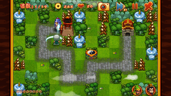 6、招财猫:招财猫的用途是每个几秒钟就会自动生成8个金币,但是前期需要花费120个金币召唤安置,可有可无,通常新手看到招财猫就会马上购买,这就造成了后期大面积遗漏的局面,在后期49波的敌人攻击关卡中使用效果不错,完美通关的利器,前期谨慎使用。