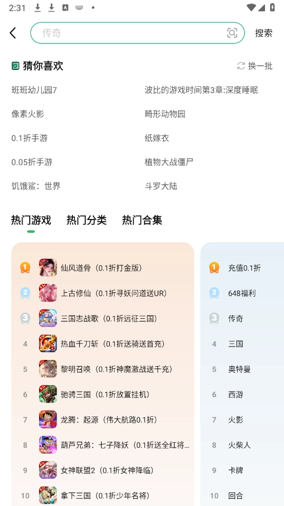 1、打开本站提供的0.1折游戏助手,能看到丰富的游戏分类,涵盖新游与网游。