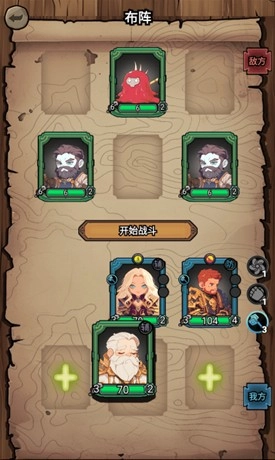 5、直接拖动卡牌即可调整其摆放位置,点击“开始”按钮就能进入战斗环节了。