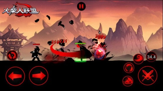 1、别具一格的剪影画风:游戏运用剪影风格的画面呈现,让原本缺乏细致形象的火柴人形象更显突出,敌人同样采用这类设计,所有角色都仅以轮廓形态展现。