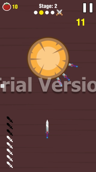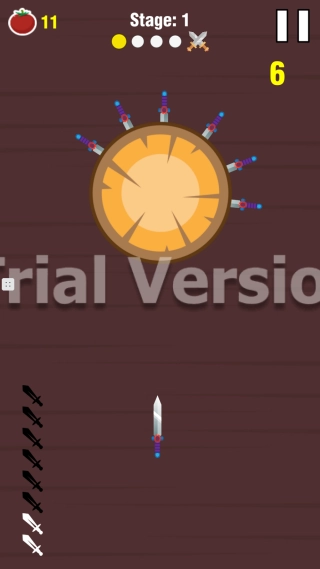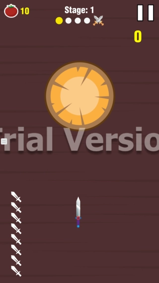 控制飞刀旋转的刃部接触目标,击中目标获取分数。