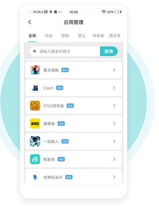 在应用管理功能里,我们能够为不同的应用分别设定各自的使用时长限制,同时也可以对特定的某一款应用进行禁用操作。