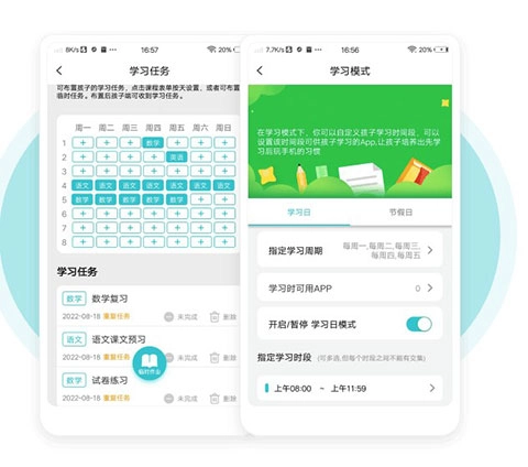 5、可以砸学习任务与学习模式中,为孩子制定合理的学习计划。