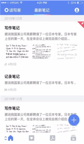 1、在读写客的首页找到想要修改的笔记;