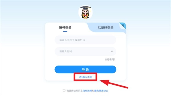 进入登录界面后点击邀请码注册
