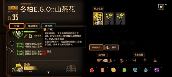 ● 在游戏里,E.G.O技能设有异想解析阶段,共分为I、II、III、IV四个等级,每次异想解析进阶都会使阶段提升1级。一般而言,异想解析的阶段越高,E.G.O技能的效果就越出色,其属性数值也会相应变得更强大。