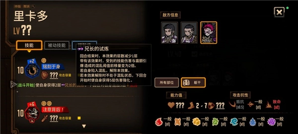 这一关能看到牢大属于弱打击类型,用初始的玛加n辛就能过,只是要耗很久时间,毕竟前面有不少小怪。开局要是刷出来的攻击指向太多n辛,那就得重开。小怪的情况就不多说了,直接说幼兄这块:拳打和脚踢的攻击用玛玛来接,挨两回合揍之后,幼兄会进入类似蓄力的状态,这时下面会出现对应的骰子。