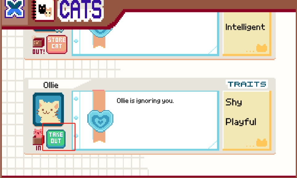 通过和猫咪玩一些小游戏来互动,这样能增进它们对你的信任,还能解锁更多可以互动的内容。