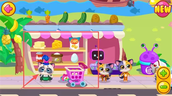 你可以通过触控操作让角色在小镇里自由探索,点击猫咪就能展开互动,比如抚摸、喂食和玩耍这类亲密的动作。