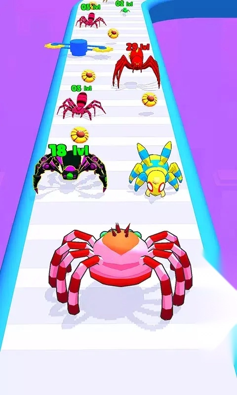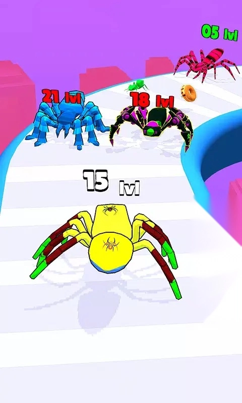 《昆虫进化》是一款以闯关进化为核心玩法的休闲小游戏。今天给大家推荐的这款游戏,主打轻松解压,无需复杂策略,也不用费脑思考,随时随地都能玩。玩家将化身一只小蜘蛛,在前进的道路上会遇到体型各异的昆虫——面对比自己大的要及时躲避,碰到比自己小的就吃掉它们来提升等级。随着等级不断提升,最终朝着终点前进。游戏操作简单易上手,只需滑动屏幕控制蜘蛛左右移动,选择要应对的昆虫即可。如果你正感到无聊,不妨试试这款游戏来打发时间吧!