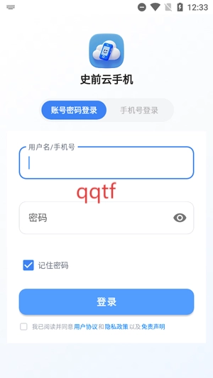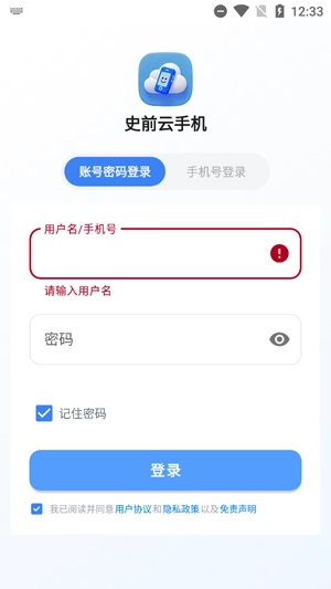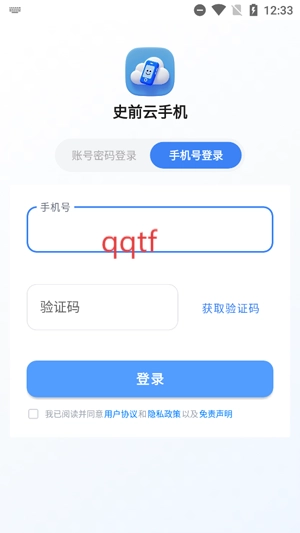 打开你的史前云手机,点击同意相关协议。