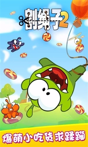 1、《割绳子2》是一款十分有趣的休闲益智游戏。作为动画游戏《割绳子》的续作,它继续讲述了爱吃糖果的Om Nom的冒险经历。