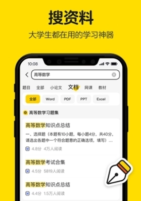 学习:搜题、文档、课程、教材汇聚大学所有学习资料,一键搜索应有尽有!