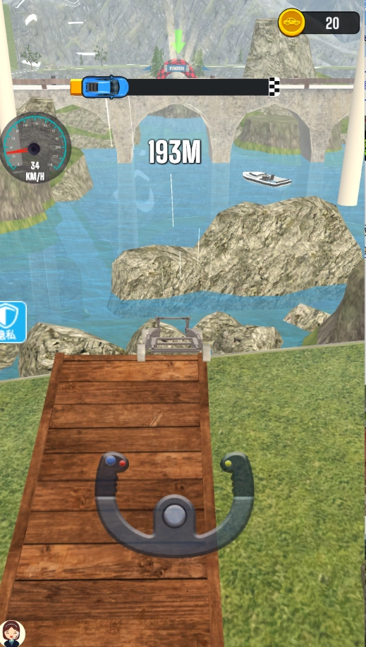 在起飞区域拖动汽车向后拉拽,借助力度条来判断蓄力的程度。
