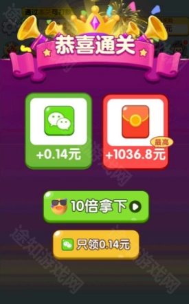 4、以此方法消除所有的螺丝后,就能过关拿到红包奖励了。