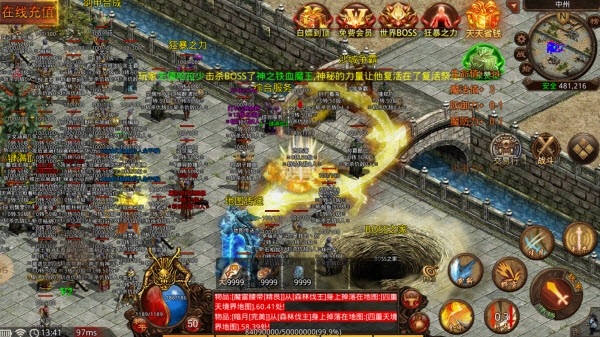 5、丰富多样的游戏地图与各类boss,更有世界boss活动,成功击杀boss即可获取丰厚的游戏奖励。