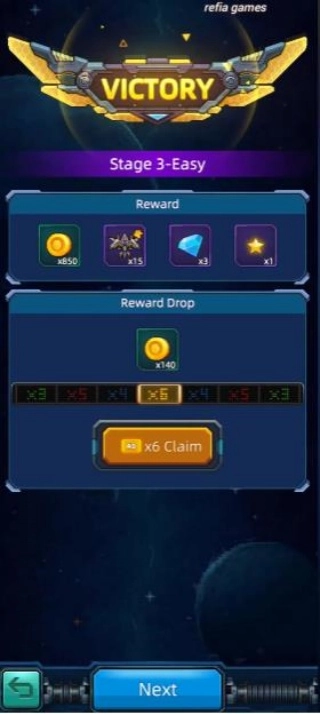 挑选战机后开启关卡挑战,依据敌人的攻击规律来调整飞行轨迹与射击频率。
