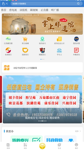 1、打开智慧泰兴App后,通过媒体板块能够浏览各类要闻资讯