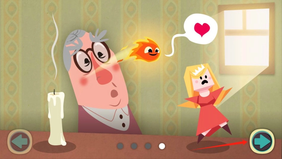 3、故事情节是这样的:小火苗的主人制作出了纸人公主,可纸人公主却逃走了,于是小火苗得帮主人把她抓回来。