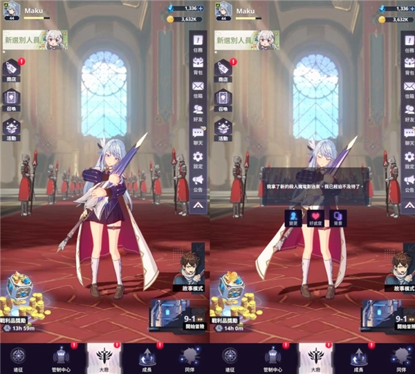 点击大厅中间的人物,就能自主更换大厅的角色和背景,还可以通过这里快速进入该角色的好感度界面。