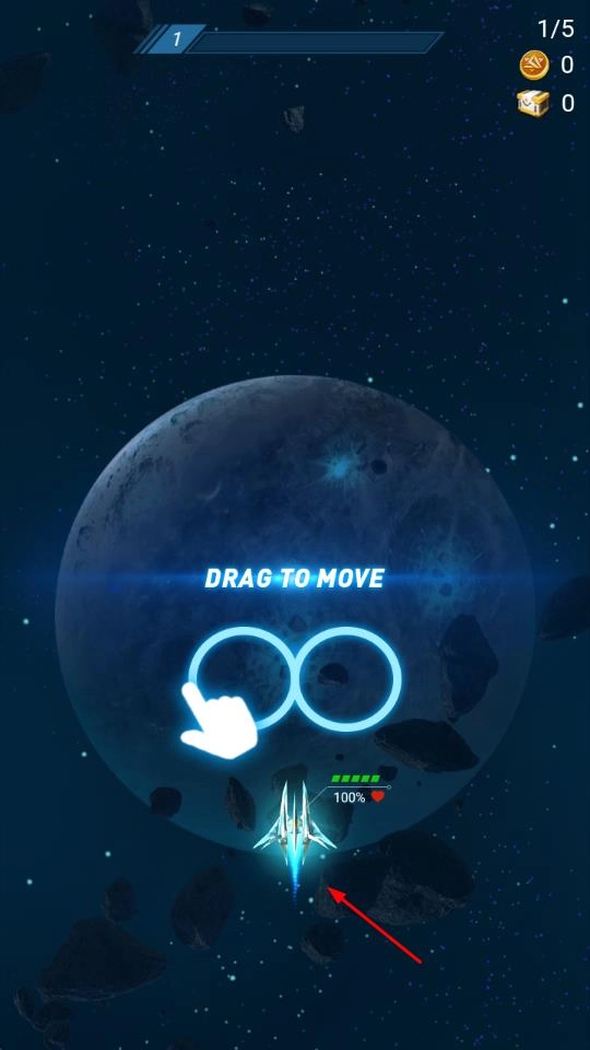 进入游戏后,在战机选择界面挑选心仪的战机,通过滑动屏幕来操控战机在初始太空场景中移动,点击射击按钮即可对迎面而来的敌人发动攻击。
